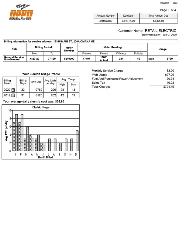- The State of Nebraska and many communities in OPPD's service area collect a tax on the purchase of goods and services. This sales tax is added to electric service bills each month when applicable.